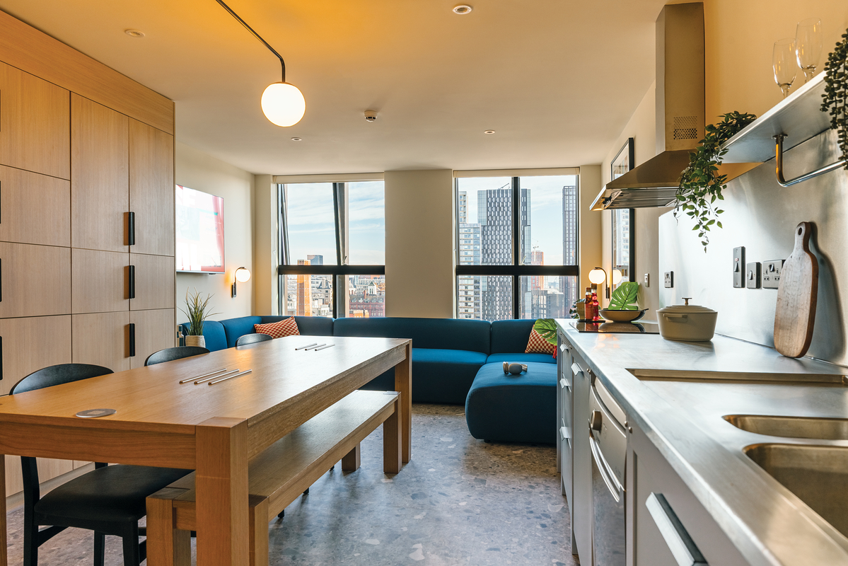 House of Social is a new kind of student house based in the centre of Manchester. With a food hall featuring five independent kitchens downstairs, and rooms to stay upstairs. Each student house has shared spaces that are designed for fuelling friendships, with plenty of space for everyone.